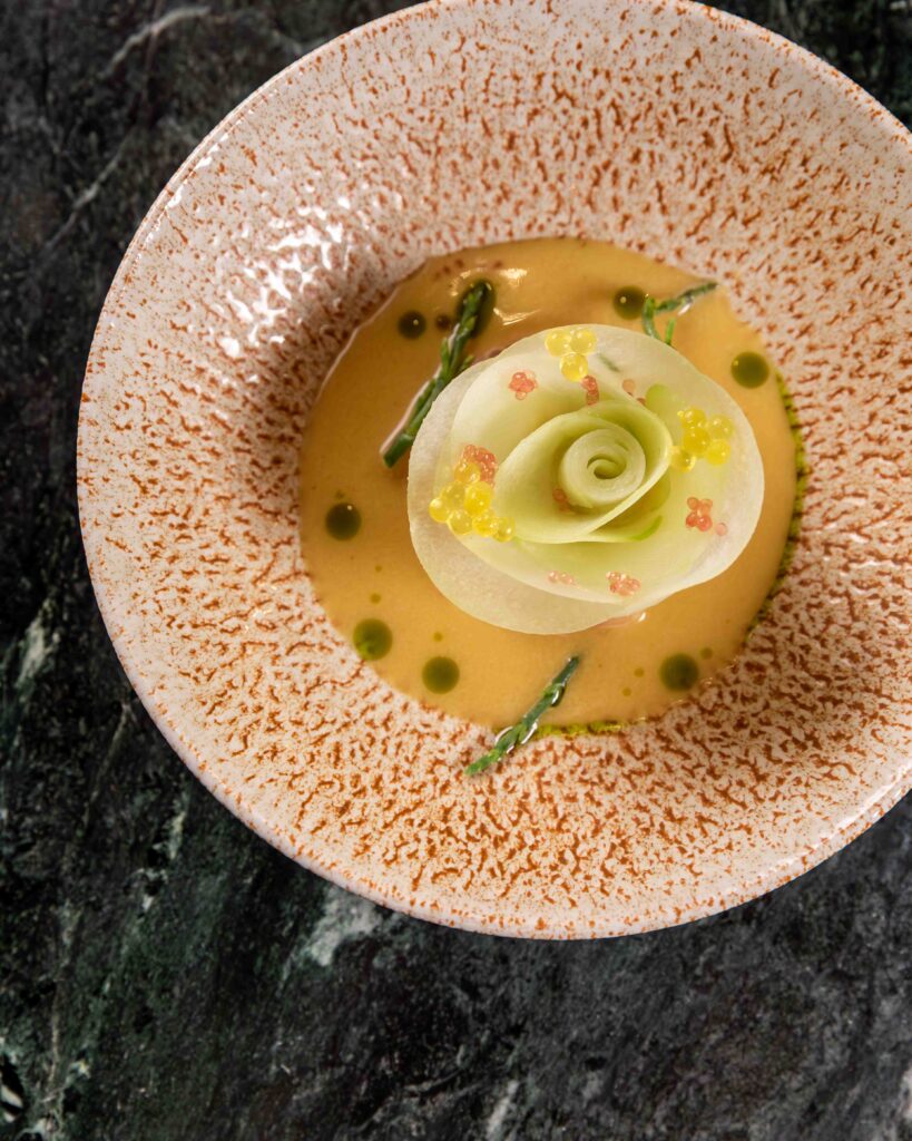 Desde su cocina en Valle, en California, Roberto Alcocer redefine el sabor de México con técnica, instinto y memoria. Su propuesta de cocina mexicana contemporánea, que le valió una estrella Michelin, parte del respeto absoluto al ingrediente y de la convicción de que cada plato debe “saber a México”. En su menú, el chayote se transforma en un ceviche elegante, los vegetales adquieren protagonismo y los guiños a la panadería tradicional conviven con la fineza de la alta cocina. Alcocer cocina con historia, pero también con futuro. ¿Cómo comenzó su camino en la cocina? ¿Recuerda el momento que detonó dedicarse a esta profesión? Donde empiezo a darme cuenta de que esto es lo que quiero hacer y que puede ser mi futuro fue cuando tenía 12 años, en un concurso de cocina en la secundaria. Gané con unos panqués y me puse a replicar esa receta. Fui el único varón en el grupo que participó, porque en aquel entonces los niños no estaban en la cocina. La hice tantas veces que terminé hartando a mi familia; me dijeron: “Aprende otra cosa”. Fue entonces cuando comencé a ver programas de cocina en televisión. La verdad es que se me daba, y empecé a jugar a cocinar, a aprender. En mi casa, creo que mi papá se dedicó a lo que más le gustaba, que eran los coches. Él es mecánico, pero fue piloto de carreras, así que hizo lo que amaba. En cambio, mi mamá estudió lo que sus papás le dijeron que debía estudiar. Gracias a eso tuve el apoyo de poder decidir lo que yo quería hacer. Ya cuando terminé la prepa, trataron de persuadirme para que estudiara otra cosa, sobre todo mi papá, que al dedicarse a un oficio sabía lo difícil que era salir adelante. Esto fue hace 25 años, cuando no era común que los hombres se enfocaran en la cocina. No había escuelas —o había muy pocas—, y la figura del chef como profesionista no existía como tal. En ese entonces, los chefs en México eran franceses o alemanes; había muy pocos mexicanos con un puesto ejecutivo. Entonces mi papá, viendo por su hijo, trató de que escogiera otra cosa. Pero yo tenía 17 años, y a esa edad, a quien menos le haces caso es a tus papás. Es la etapa más verde de tu vida. Creo que fui suertudo al escoger algo que realmente me gustaba. Años después, es a lo único que me he dedicado y pienso hacerlo el resto de mi vida. ¿Quiénes o qué han influido en tu desarrollo culinario? Yo nací como cocinero profesional en Francia. En esta insistencia de mis padres para que no estudiara cocina, me ofrecieron un año sabático, y yo busqué que fuera en Francia. Logré un intercambio estudiantil, y la familia que me recibió me inscribió en una escuela de cocina en lugar de una preparatoria normal. En este intercambio se cursa el último año de prepa; yo cursé un año de cocina. Ahí nació Roberto Alcocer, cocinero. Mis papás pensaron que a los tres meses me iba a dar por vencido, que me regresaría, pero al ver esa vieja escuela francesa —con su rigidez y su alto nivel de exigencia— me enamoré del oficio. No quería regresar a México, pero era hijo de casa y tenía que entregar un título, así que volví a estudiar. Y así fue. ¿Cómo describiría la evolución de su estilo gastronómico desde sus primeros proyectos hasta hoy? La evolución ha sido… creo que todos comenzamos copiando. Comenzamos cocinando lo que aprendimos como cocineros. Obviamente, como cocinero aprendí en un restaurante, en otro y en otro, y empiezas a hacer eso; luego vas creando tu estilo propio. También vas conociendo ingredientes nuevos, vas viajando, y poco a poco te vas sintiendo cómodo y confiado de quién eres como persona: quién soy yo, dónde me he criado, qué sabores he probado, qué conozco. Me preocupo por demostrar todo eso en la mesa. Ya no sirvo un plato que yo no haya probado, aunque sea algo bien sencillo, pero tiene que estar muy rico. Mi evolución se da después de 25 años cocinando, de poner en mi cocina mis vivencias, mis sabores, mis gustos, y de ahora presentárselos a mis comensales. ¿Cómo mantiene presente a México en su cocina? La cocina que hago en Estados Unidos es una cocina mexicana contemporánea, y siempre parte de una raíz: tiene que ser ingrediente mexicano o un ingrediente de origen mexicano cultivado en la localidad, con técnicas de cocina mexicanas y coherencia. Lo que te sirva en el plato debe saber a México, y la ventaja que tenemos es que México es tan rico que cada uno de sus rincones sabe diferente. No tienes que casarte con un estilo. He tenido comensales que me dicen: “Esto no sabe a México”, y les aclaro: este es un relleno negro, la inspiración viene de un recado negro, que es un mole negro, y les presento a la península de Yucatán, donde no hay moles, hay recados. Después les muestro Veracruz, Tabasco, Monterrey, etcétera. En el restaurante tengo guiños de diferentes partes de México que me gustan mucho. A mí me encantan los coricos, una galleta que se encuentra en las gasolineras en Baja California —no en Sonora ni en Sinaloa—, pero como hay tantos sonorenses y sinaloenses en Baja California, el corico lo encuentras. Yo lo conozco de comérmelo con mi café. La receta lleva pinole, harina de maíz con especias, cocinada. En mi restaurante tengo, como petit four, un corico; para mí, es presentar una faceta de México. Con el café doy un puerquito de piloncillo —mi pan dulce favorito—, y la forma de mostrarme más a mis comensales es explicándoles que la panadería mexicana es un arte y que tenemos una gran variedad de panes en México. La ventaja es que nuestro país es tan rico que me sobran ingredientes y rincones. ¿Qué papel juega tu memoria personal y familiar en su cocina?