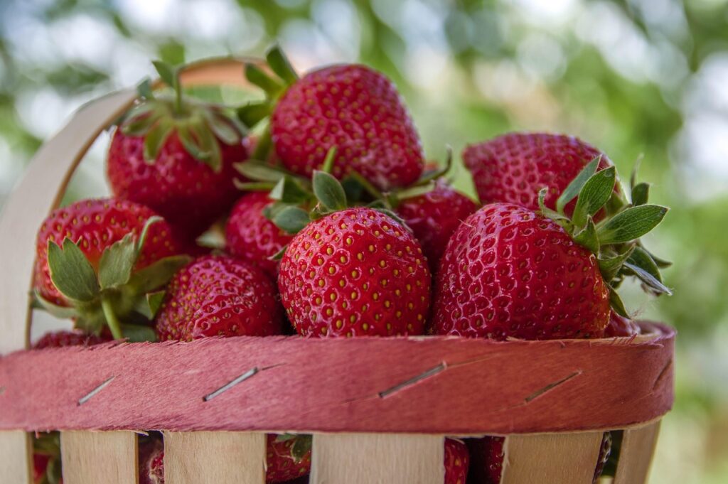 Fresas: Ricas en vitamina C, potasio y antioxidantes como el licopeno, componentes que mejoran la circulación sanguínea, estimulan la lubricación y elevan la libido.