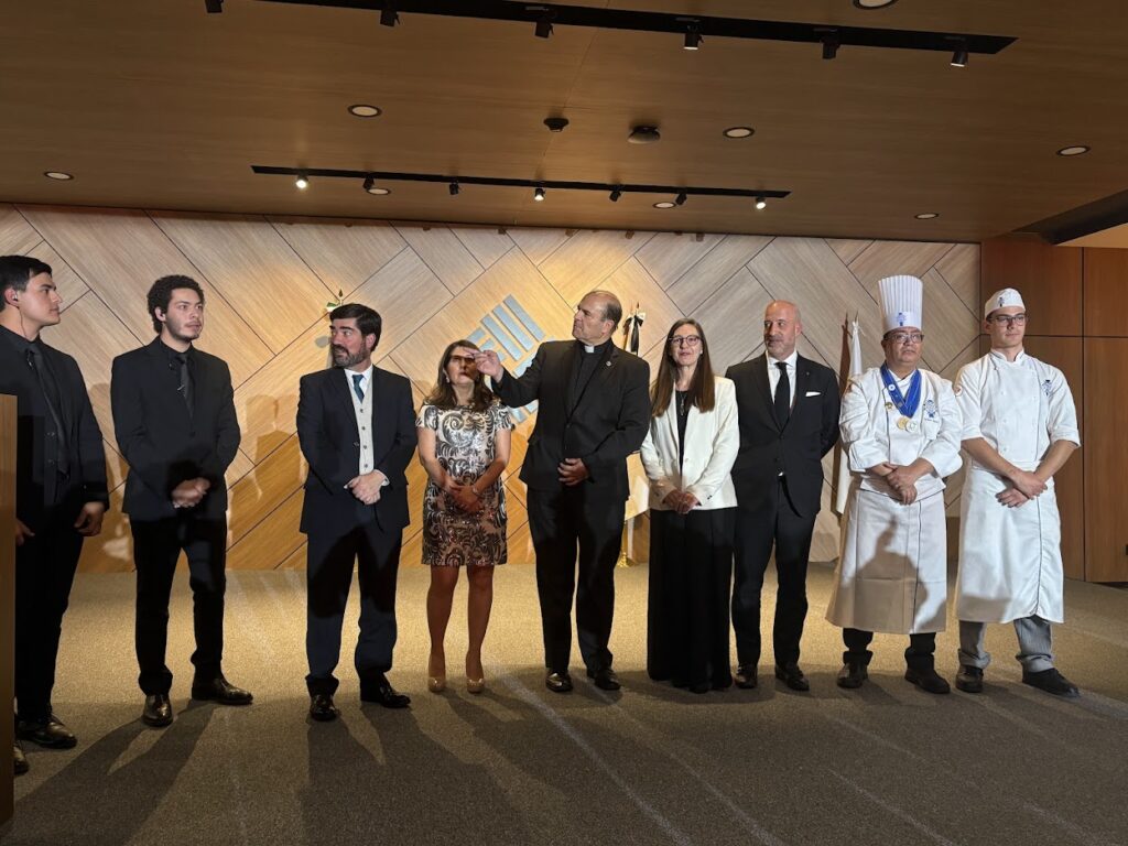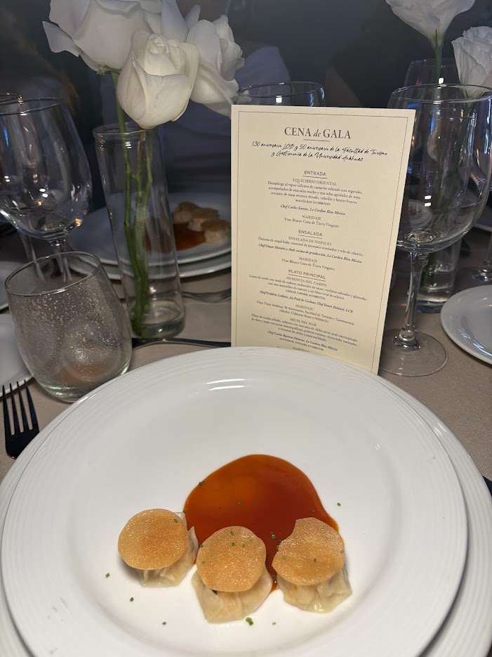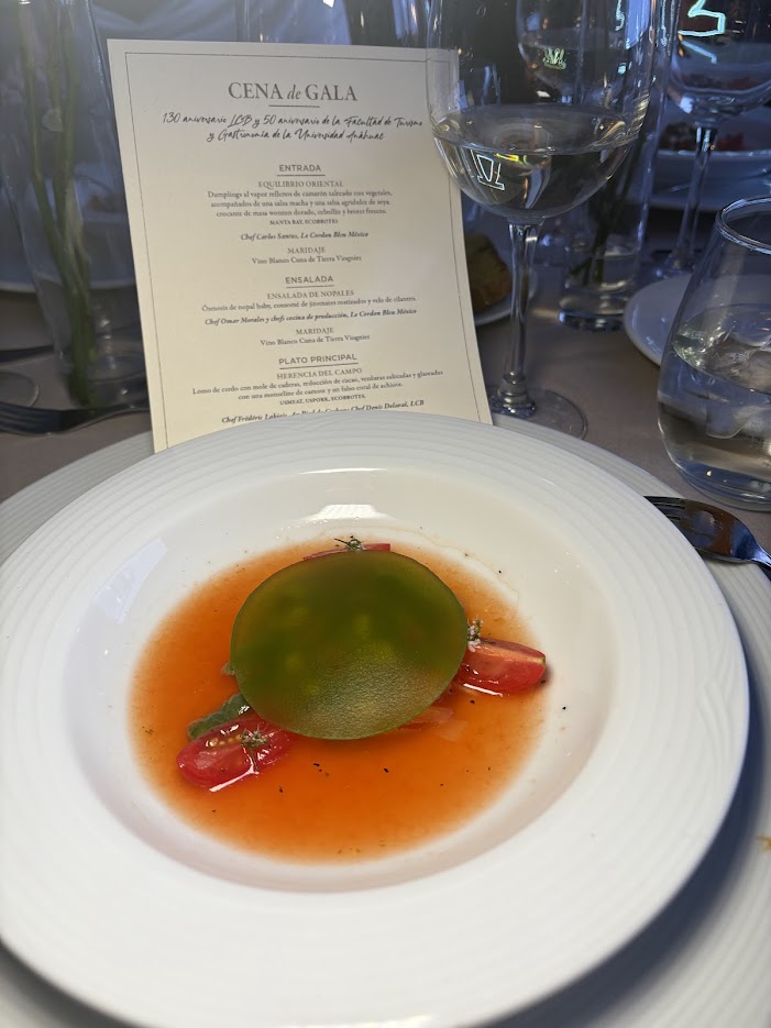 Esta ceremonia tuvo lugar en el Campus Norte con una cena de gala concebida y ejecutada por los alumnos de octavo semestre de Gastronomía, quienes fueron responsables del diseño del menú, la producción culinaria y la coordinación operativa del evento, como parte de un ejercicio académico que retomó técnicas clásicas francesas integradas con ingredientes regionales y referencias internacionales.