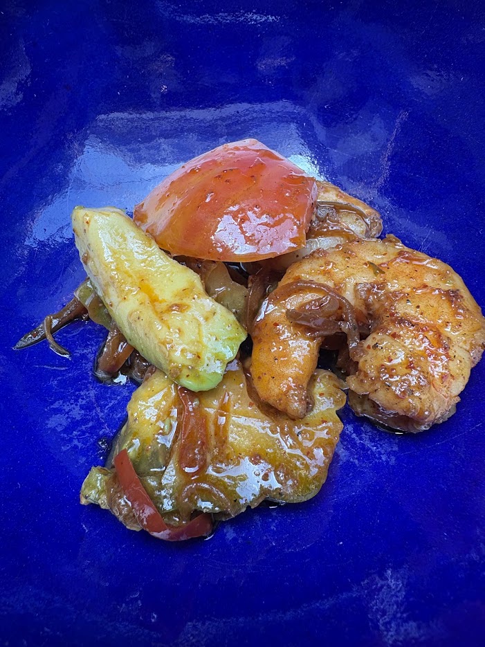 Camarones arrieros: salteados en salsas de chiles secos y serrano.