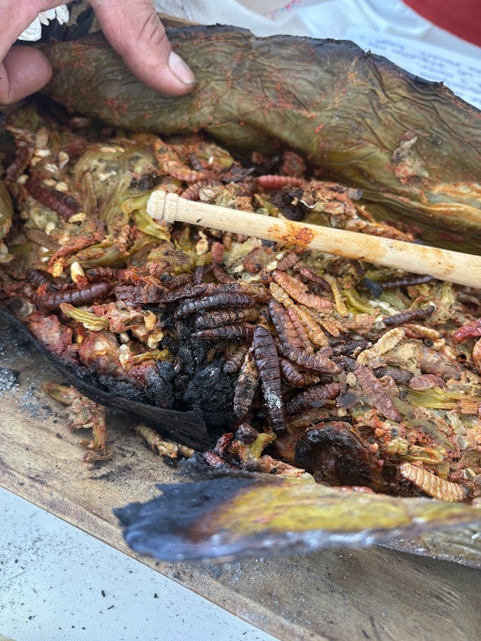 Este año, explica, decidió llevar zacahuil porque la disponibilidad de ingredientes silvestres fue menor, “la fauna se atrasó mucho y no teníamos qué traer, así que dije voy a llevar el zacahuil”.